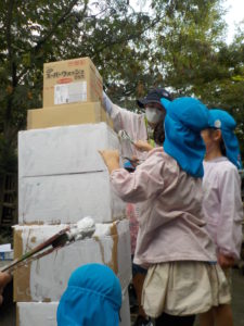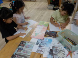 結婚式のイメージカラー白色で塗ります(年長さん)。