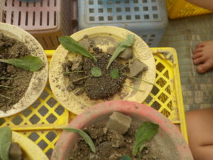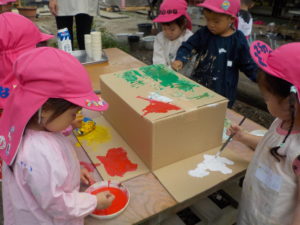 年長さんからの刺激を受けて、「結婚式つくりたい!」とカラフルな塔を作成。